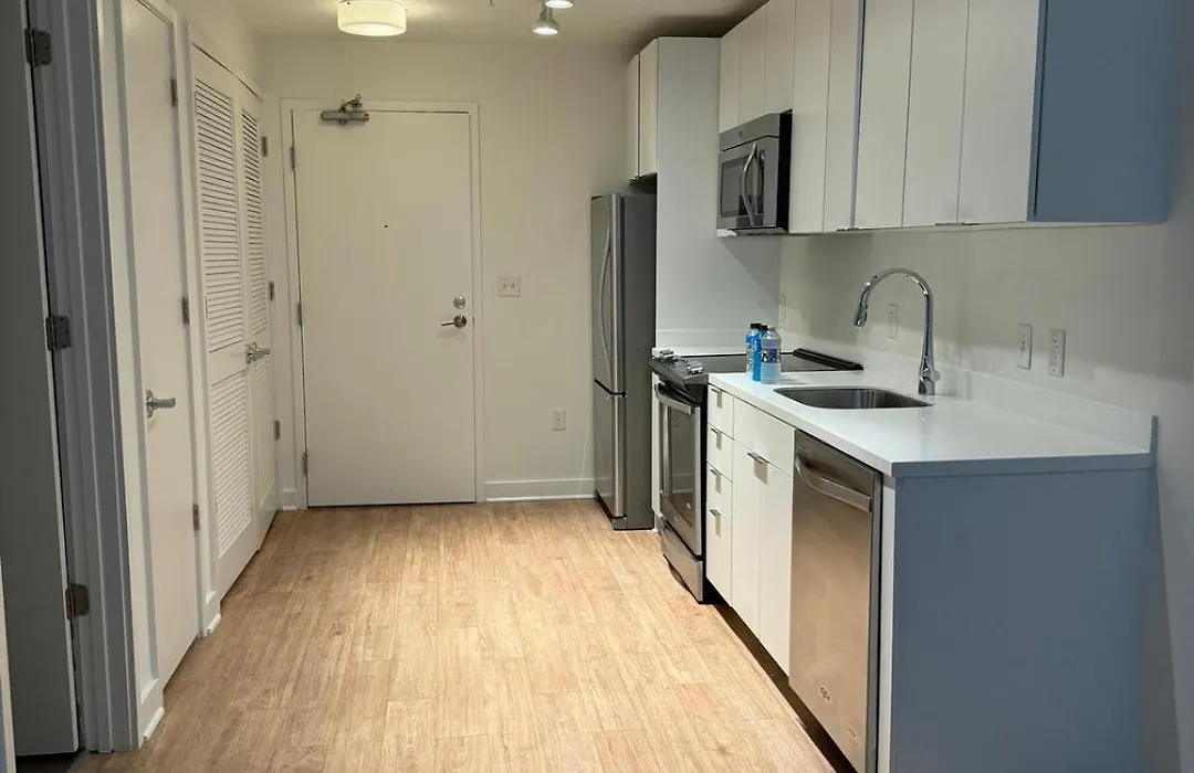 Eine komplette Küche wird im Lux 1-Bedroom Apartment In Dc angeboten. Gerichte der modernen Küche werden im Restaurant Smith Commons ca. 5 Gehminuten vom Apartment entfernt serviert.